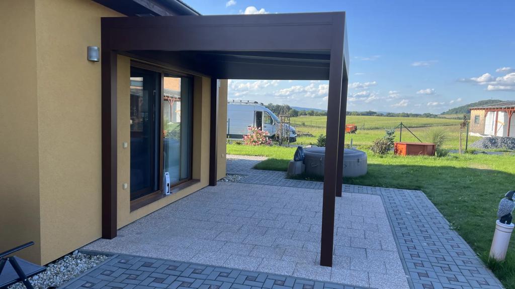 Pergolu je možné kotvit přímo ke stěně domu nebo ji instalovat jako samostatně stojící konstrukci. Každé řešení se přizpůsobuje individuálním požadavkům zákazníka.