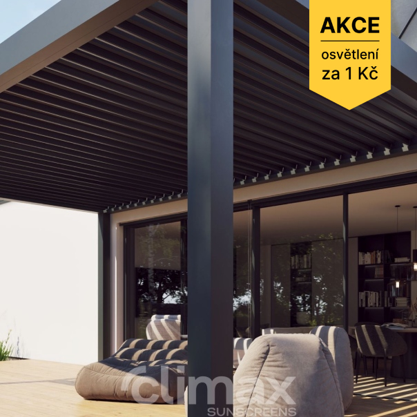 ÚNOROVÁ AKCE: Užijte si kouzelnou zimní atmosféru na terase. K bioklimatické pergole Lamelino si nyní můžete pořídit osvětlení dle vlastního výběru za 1 Kč. Nabídka platí po celý únor.