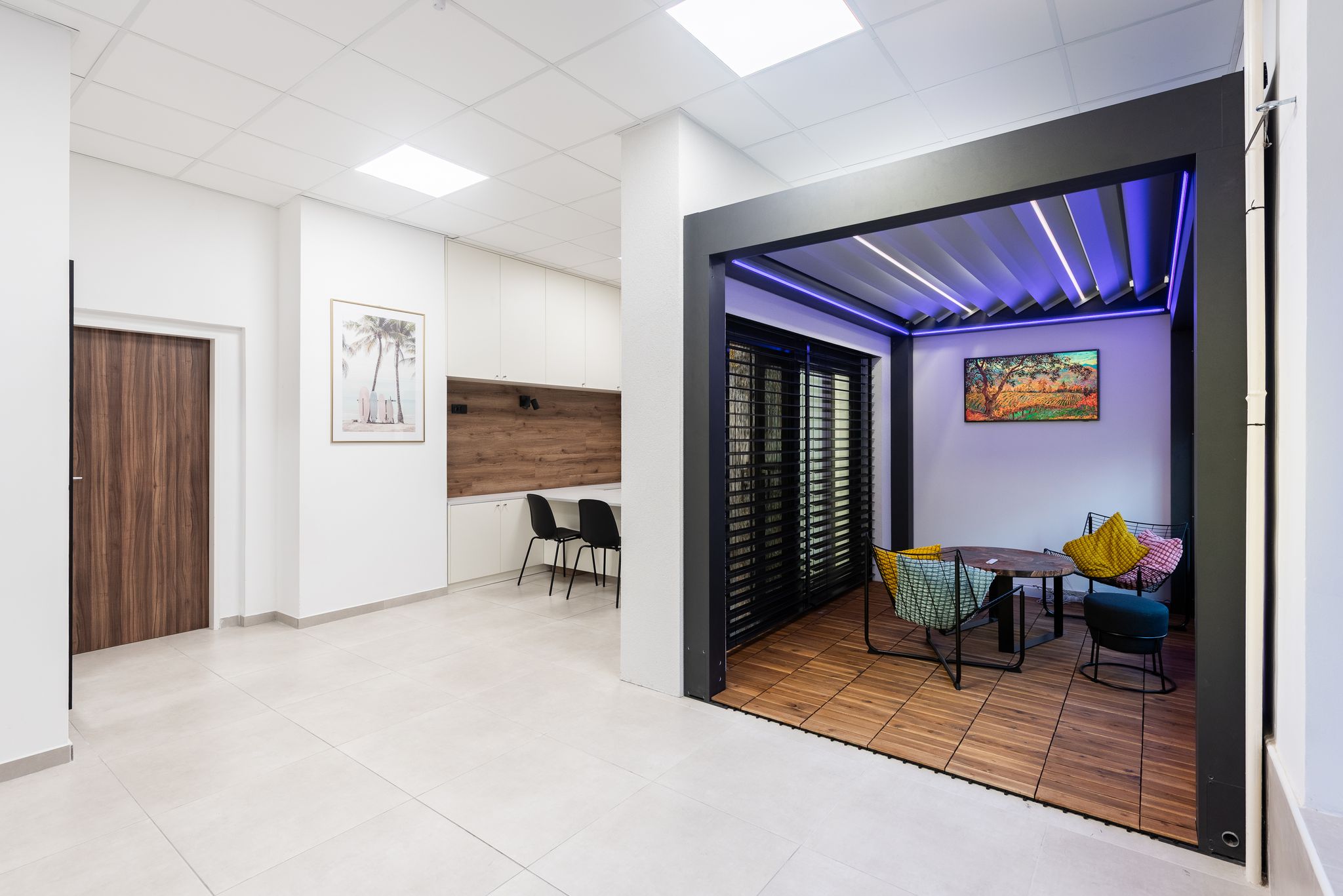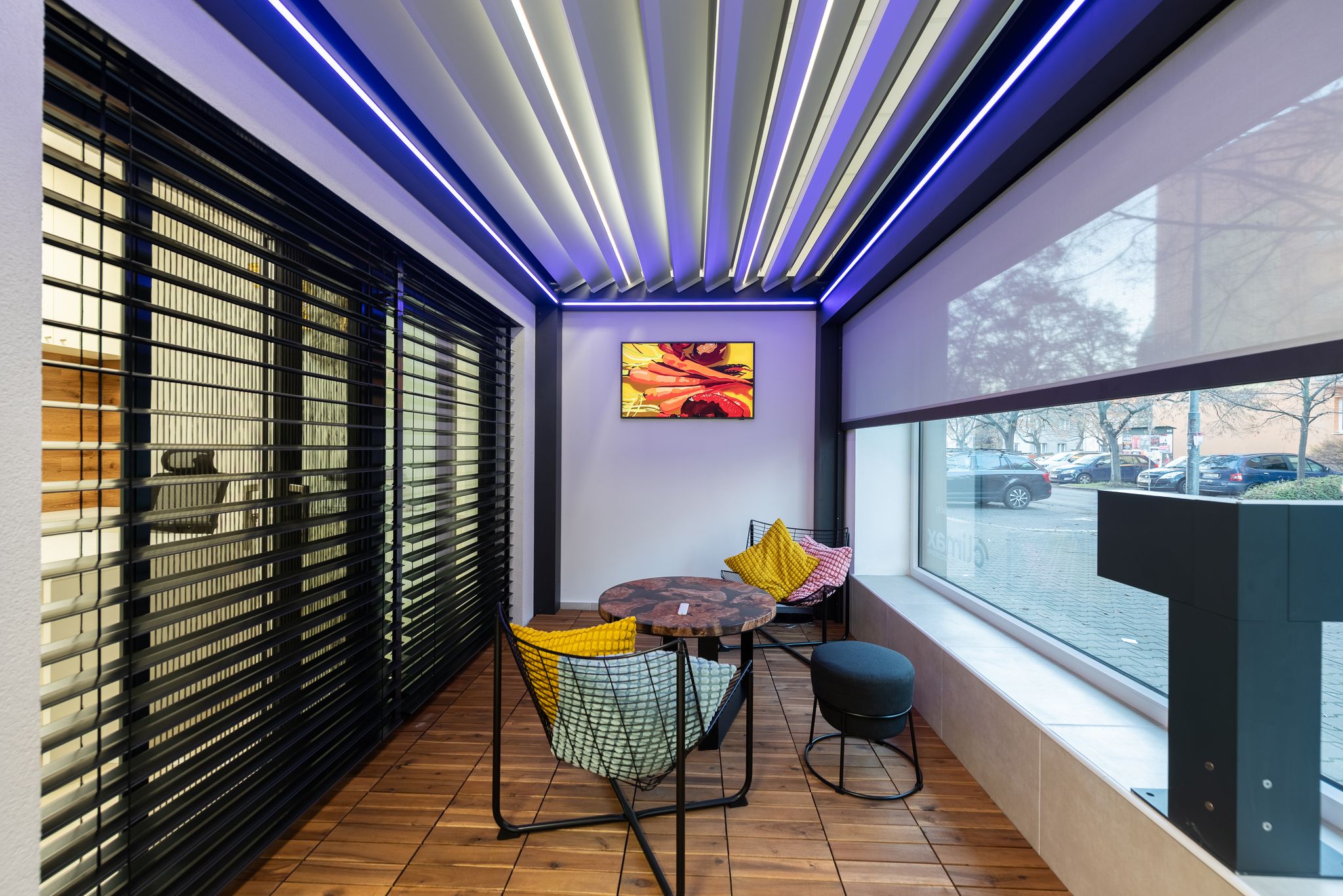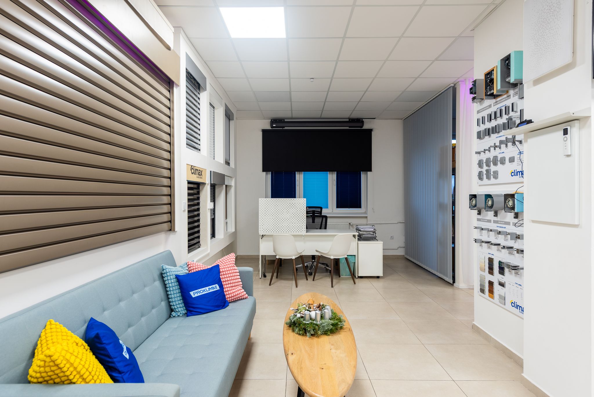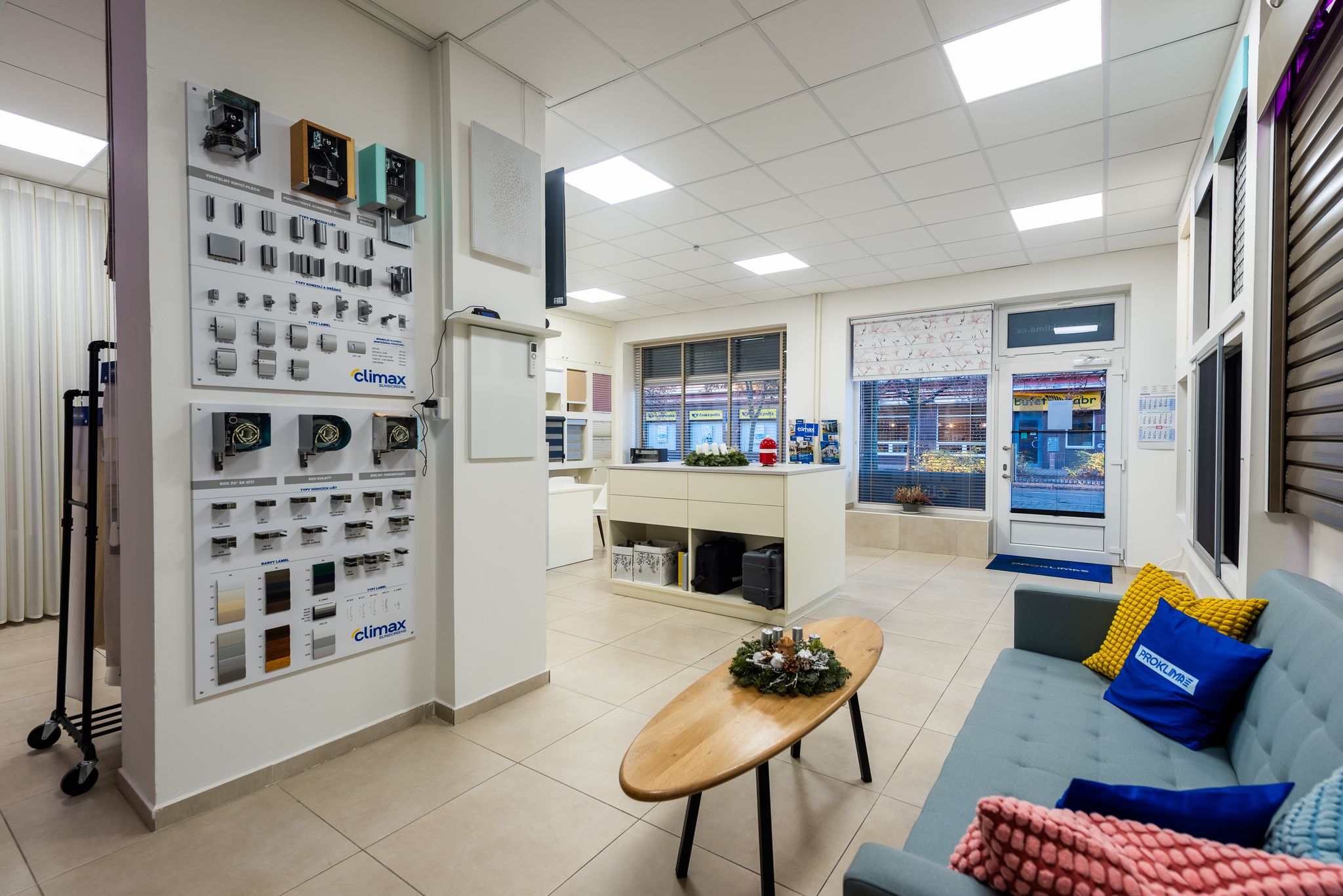 Je to světlý moderní prostor, ve kterém si můžete prohlédnout a vyzkoušet veškeré výrobky, které by jste mohli na svých oknech zvažovat.