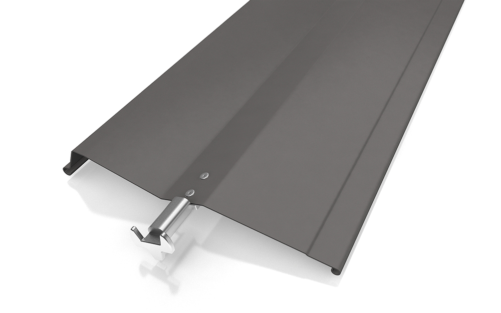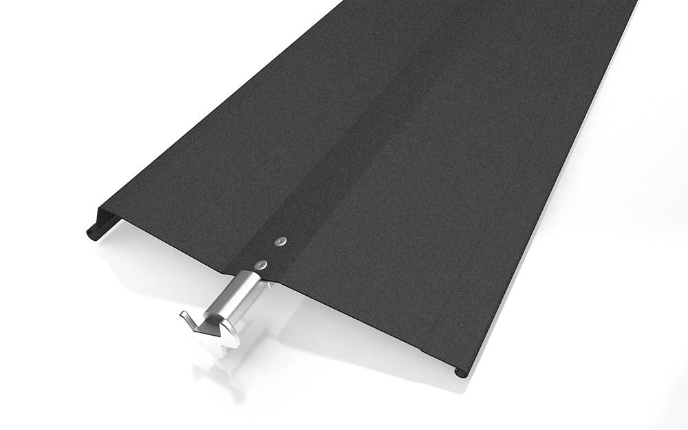 Hliníkový krycí plech zakrývá horní nosič i svazek lamel a při vytažení venkovní žaluzie je chrání před povětrnostními vlivy, barvu lze sladit s barvou žaluzií nebo fasády.